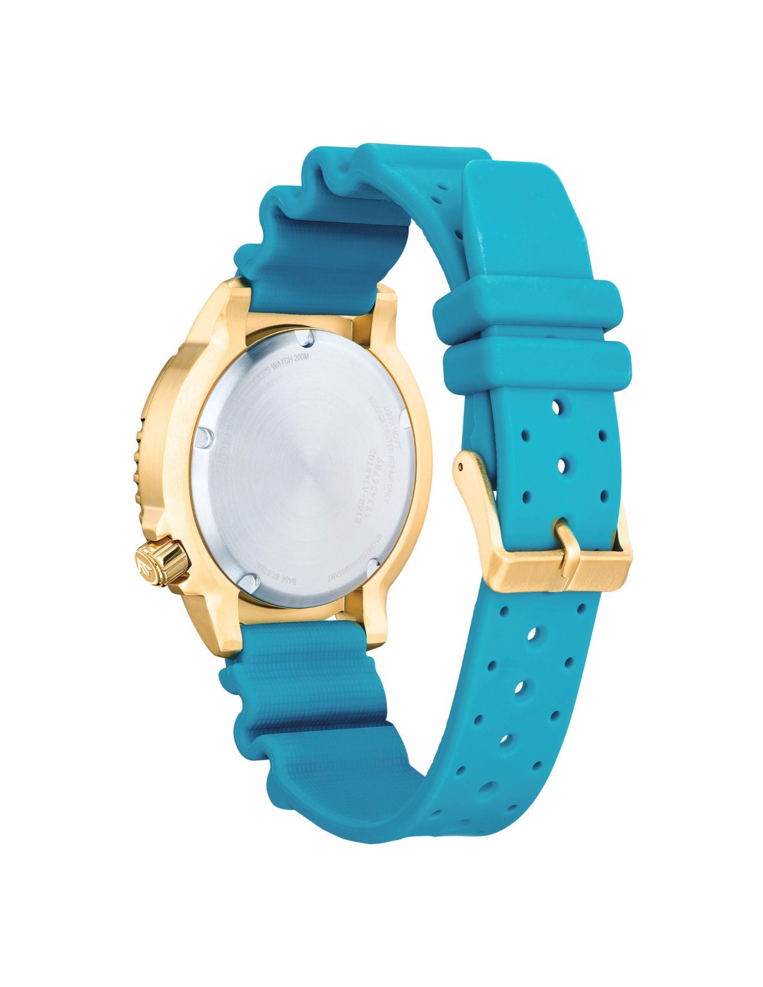 Orologio con movimento Eco Drive (a carica luce infinita), riserva di carica di 180 giorni. Caratteristiche: Cassa in acciaio placcato oro rosa, cinturino in morbido poliuretano. Vetro minerale. Ghiera girevole unidirezionale. Indici e sfere ad alta luminosità. Fondo e corona serrati a vite. WR 20 bar.