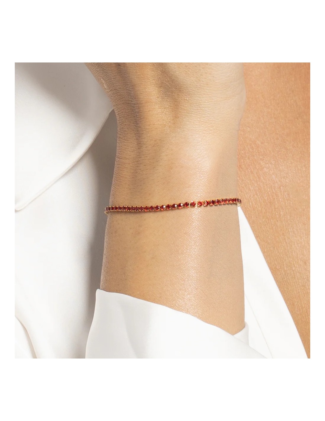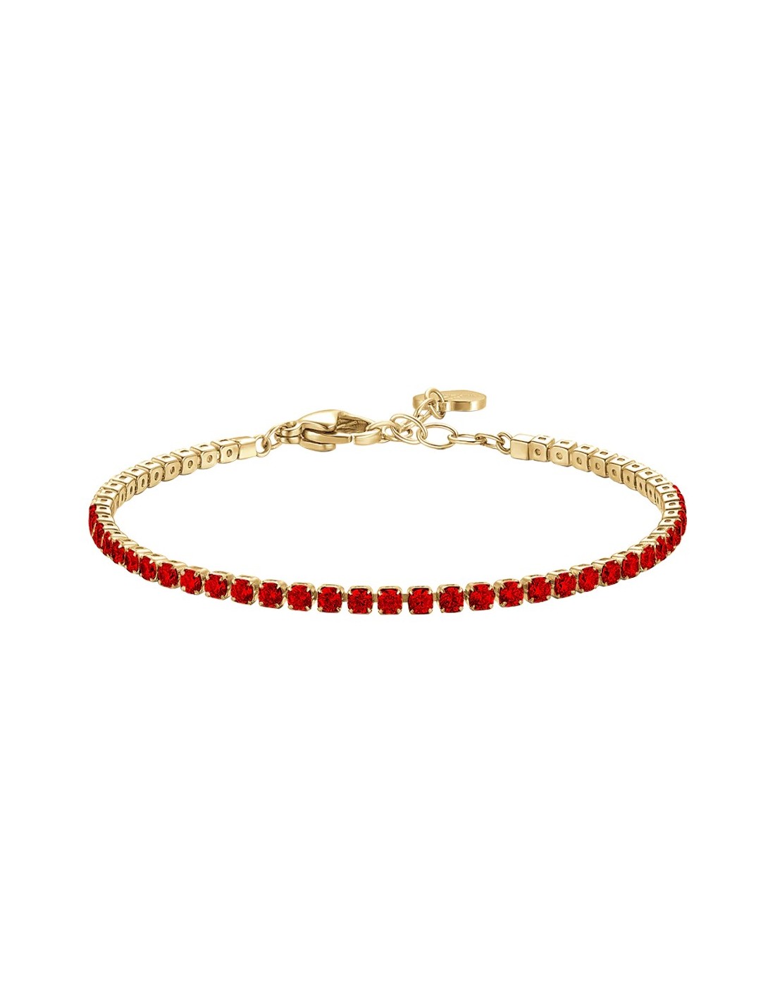 Bracciale tennis donna in acciaio ip color oro con zirconi rossi colore oro Lunghezza: 15,5 + 3 cm Diametro zirconi: 2 mm. Eleganza e funzionalità si incontrano in questo accessorio in acciaio, pensato per chi ama i dettagli curati e uno stile senza tempo. Un complemento perfetto per ogni outfit.